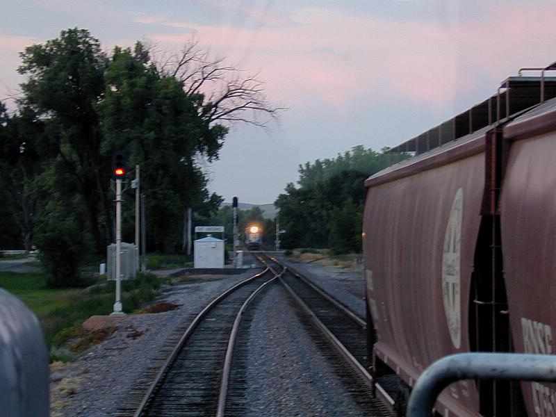 We were meeting 5 trains here this morning and amazingly it was going to be fantastic meets. The first train was stopped at Lodge Grass waiting on me when I arrived. The 2nd train was just stopping behind him as I cleared the west switch. The last of the 5 trains was out of the next station, Aberdeen, so it looked as if we were going to meet 5 trains in about 25-30 minutes. Wow! That is great. That also was plan A.