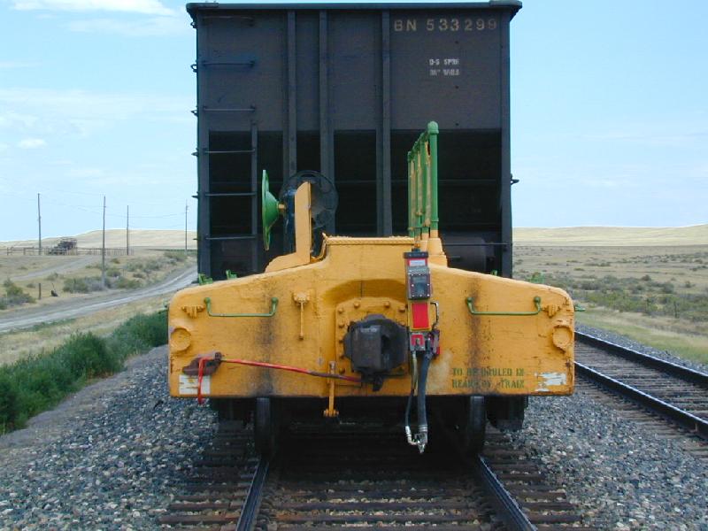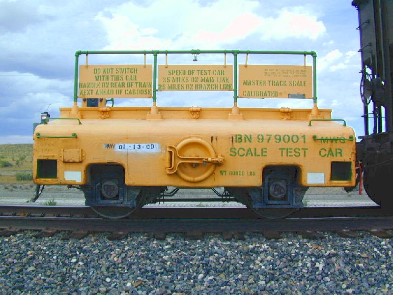 On 7-19-00 I got called to run home on the M-BILDEN local. What a train! We had an SD70MAC and an SD40-2 with 4 loads, 7 empties, 678 tons, and 702 feet. We could do track speed straight up. But in railroading there is always a "but". Tacked on the rear end as the last car of this high flying train was this piece of $%#@^&!! A 35mph scale test car. ARGH!